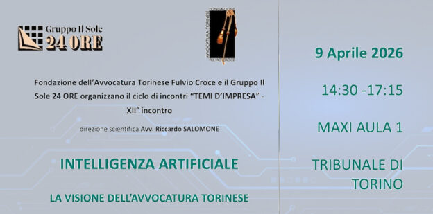 Gggi pomeriggio in Maxi Aula 1 del Tribunale di Torino se ne parlerà al convegno “Intelligenza Artificiale – La visione dell’avvocatura torinese“, organizzato da Fondazione dell’Avvocatura Torinese Fulvio Croce e il gruppo Il Sole 24 Ore, parte del ciclo di incontri “Temi d’Impresa” – XII° incontro.