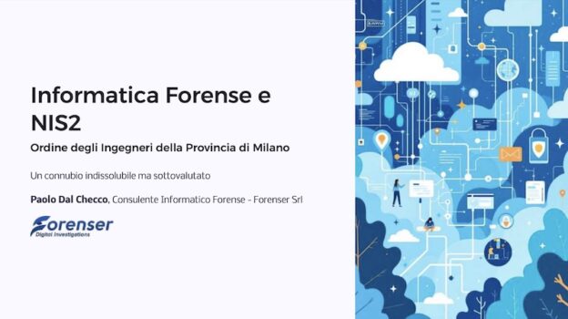 Il mio intervento nel corso sulla NIS2 è stato intitolato “Informatica Forense e NIS2: Un Connubio Indispensabile per la Sicurezza Sistemica” ed è stato dedicato all’importanza critica del legame tra Informatica Forense e la Direttiva NIS2, un binomio che, sebbene indissolubile, è ancora troppo sottovalutato.